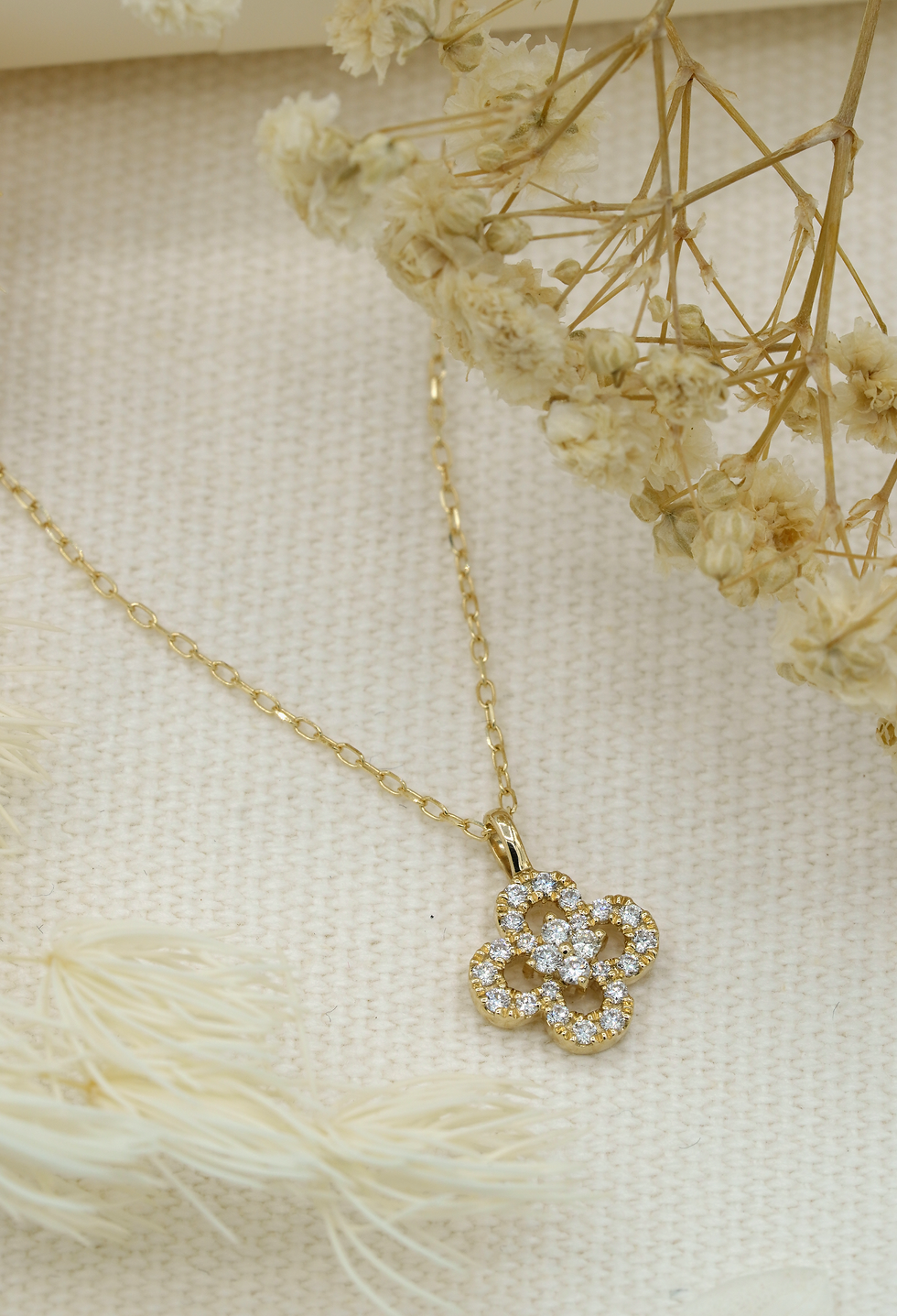 Elory - 14k Solid Yellow Gold Clover Necklace